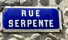 La rue Serpente, dont le géomètre ignorait son veritable nom, l'a ainsi nommée à cause de la courbe qu'elle forme aux deux extrémités. Anciennement rue du Petit-Pèlerin, nom donné en raison d'une ancienne brasserie, la brasserie du Petit-Pèlerin[6].