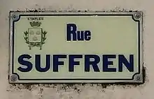 Cette voie, ouverte le , passe dans la propriété d'Artus Lecat, maire en 1830, et porte le nom du célèbre marin Pierre André de Suffren (1729-1788) avec qui il fit un voyage en Amérique en qualité d'employé de marine[a 18].