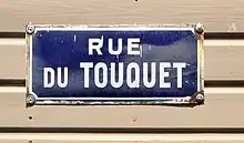 Du nom de la commune voisine Touquet-Paris-Plage ou du nom donné à la pointe du Touquet depuis plusieurs siècles. cette rue menait au pied du premier pont d'Étaples de 1860 dit pont Napoléon.