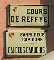 La rue place se nommait anciennement : carrèra lonca qui signifie rue longue (ancien quartier de la rue longue). On y trouve la maison natale du maréchal Foch.