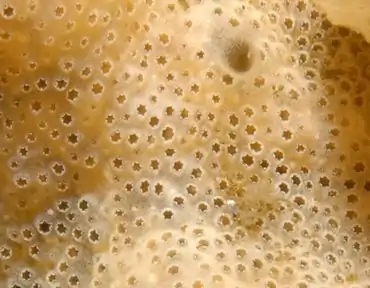 - des larves couvées (sous la surface de la matrice) jusqu’à leur maturité[2] ;