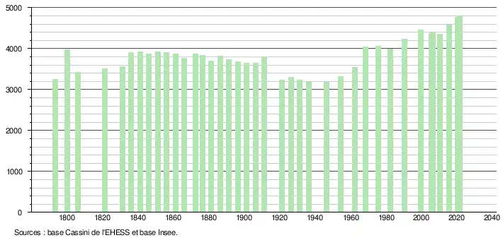 4 803 hab. (2021 en augmentation de 4,96 % par rapport à 2015)