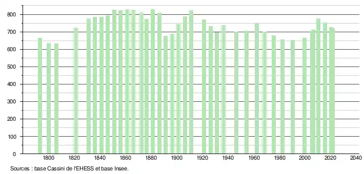 721 hab. (2021 en diminution de 3,99 % par rapport à 2015)