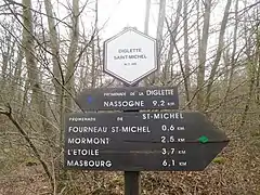 Prenant naissance dans la forêt de Saint-Michel, en province de Luxembourg, la Diglette coule au sud du village de Nassogne et bifurquant vers le sud (dans le bois de Nassogne) elle passe sous la Route Nationale 849 et se jette dans la Masblette à deux kilomètres au nord du domaine du Fourneau Saint-Michel dans la commune de Saint-Hubert. Le ruisseau a donné son nom au centre de vacances du collège Saint-Michel qui se trouve sur son bord : 'La Diglette'.