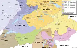 Depuis la domination des Francs jusqu'au début du XVe siècle les évêques de Coire sont seigneurs d'une partie de la Rhétie supérieure[2]. Au début, l'évêché appartenait à l'archidiocèse de Milan ; par l'effet du traité de Verdun conclu en 843, il reviendra à la province ecclésiastique de Mayence. Les évêques, qui relevaient du duché de Souabe, obtinrent l'immédiateté impériale comme seigneurs temporels de la principauté épiscopale (Hochstift) des mains de l'empereur Frédéric Barberousse en 1170. Ils étaient en conflit permanent avec leur ministériels (comme la noble famille von Sax) et les seigneuries voisines : au XIVe siècle déjà, les seigneurs de Milan ont acquis les comtés de Chiavenne et de Bormio ; le val Venosta (Vinschgau) et la Basse-Engadine étaient sous contrôle des comtes de Tyrol. En 1367, les sujets conclurent la Ligue de la Maison-Dieu, pour contrer le pouvoir des évêques et de la maison de Habsbourg.