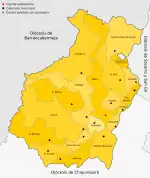 Il comprend les municipalités du département de Santander : Aguada, Albania, Barbosa, Bolívar, Chipatá, Florián, El Peñón, Guavatá, Güepsa, Jesús María, Landázuri, La Belleza, La Paz, Puente Nacional, Sucre, San Benito, Santa Helena del Opón, Vélez et le district de Santa Rita del Opón de la municipalité d'El Guacamayo ce qui représente un territoire de 4 957 km2 divisé en 33 paroisses.