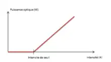 La caractéristique d'une diode laser ressemble à celle d'une diode. En dessous d'une valeur d'intensité seuil, la diode est absorbante, au-delà, l'émission stimulée est proportionnelle à l'intensité du courant électrique.