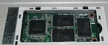 À mi-chemin entre le disque dur et le SSD, les disques durs hybrides (SSHD) sont des disques magnétiques classiques accompagnés d'un petit module de mémoire flash (8 à 64 Go selon le fabricant[50]) et d'une mémoire cache (8 à 64 Mo selon le fabricant[50]).