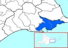 Emplacement du district d'Akkeshi dans la sous-préfecture de Kushiro.
