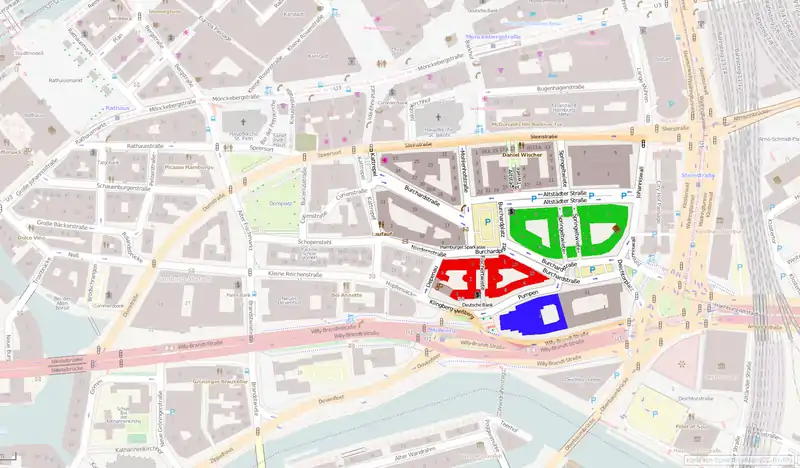En premier lieu, les zones du sud à proximité immédiate de l'Elbe furent assainies, afin de libérer de l'espace pour le port libre, tel que demandé par le gouvernement allemand. Comme Hambourg avait commencé à réorganiser depuis ses lignes de chemin de fer, la ville avait une bonne expériences dans le relogement de populations importantes (également grâce à la construction de la Speicherstadt). La percée de la Mönckebergstraße, nécessaire pour les travaux de métro, fut achevée en . Après les relevés géométriques de , et à la suite du concours d'urbanisme de , la zone située entre la Mönckebergstraße et le Zollkanal fut planifiée pour accueillir des bâtiments d'habitation.