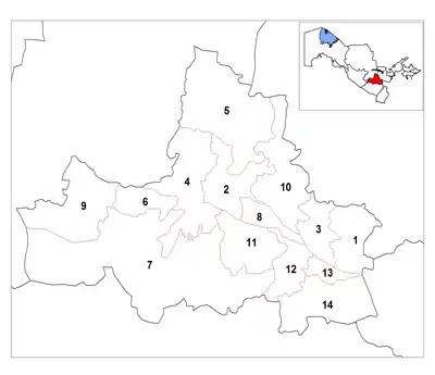 | 14 | District d'Yukori Chirchiq | Yangibazar (Yangibozor) |