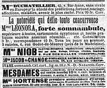 Annonces publicitaires de plusieurs « somnambules », parues dans Le Petit Journal du 1er octobre 1894.