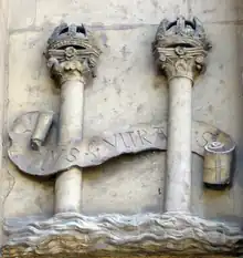 Le symbole du dollar remonte sans doute à la pièce de 8 reales espagnole. En effet, la pièce d'argent espagnole de huit réaux de plate possédait un revers arborant un graphisme remarquable, caractéristique : deux colonnes couronnées encadrant deux planisphères, représentant l'Ancien et le Nouveau Monde, surmontées d'une couronne royale. Elle faisait partie d'une grande lignée de monnaies, la famille monétaire des réaux d'Espagne, la pièce de huit étant apparentée de surcroît comme on l'a dit plus haut au thaler germanique. Les deux colonnes figuraient les anciennes colonnes d'Hercule qui, dans l'Antiquité, symbolisaient les falaises du détroit de Gibraltar, et donc le passage de Mare nostrum (la Méditerranée) vers l'inconnu atlantique. Chacune des colonnes est entourée d'une banderole (ou phylactère) en forme de « S » où on lit « PLUS » sur l'une et « ULTRA » sur l'autre (« au-delà ») pour montrer qu'eux, les Espagnols, avaient pu franchir ces colonnes du Nec plus ultra (ou « rien au-delà »), et avaient conquis le nouveau monde. Pour l'Espagne, première puissance coloniale et du monde d'alors, ces deux colonnes ouvraient sur l'empire espagnol qui s'étendait sur les deux mondes (symbolisés par les deux planisphères). Par ailleurs, « Plus Oultre », c'est-à-dire Plus Ultra, était la devise personnelle, en français, de l'empereur Charles Quint (dont on sait que « sur son empire, le soleil ne se couchait jamais »).