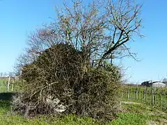 Dombrowski mentionne que le monument « était rempli de terre dont on retirait régulièrement des ossements très nombreux, pour amender les champs »[3]. Lui-même y découvrit des ossements humains calcinés, des poteries « grossières »[3], un grand couteau « bien retaillé »[3] en silex noir et « un ornement en cuivre rouge de trente-cinq centimètres et demi de longueur »[3] qu'il identifie comme « une espèce de diadème »[3]. La même année 1874, M. Hoareau de Source fit don au musée de Périgueux d'un anneau en pierre calcaire et d'un couteau en silex recueillis dans l'édifice[2].