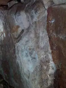 Le deuxième pilier, à gauche de l'entrée, comporte un relief, peut-être naturel, qui ressemble à une tête de cervidé. Un cas semblable existe à l'intérieur de l'allée couverte de la Ganguille[1].