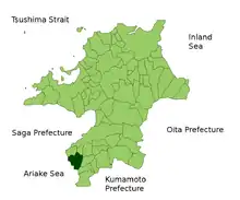 Situation du domaine de Yanagawa dans la préfecture de Fukuoka.
