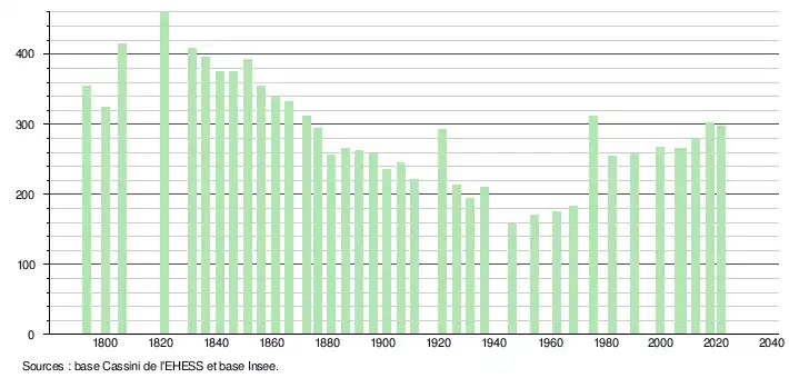 (Sources : Ldh/EHESS/Cassini jusqu'en 1999[21] puis Insee à partir de 2006[28].)