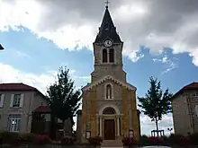 L'église Saint-Antoine ou Notre-Dame de l’Assomption est edifiée au XIXe (1856-1857), en remplacement de l'ancienne église située près du presbytère, trop vétuste et trop petite. Elle se distingue par deux particularités : à l'inverse des églises qui reçoivent traditionnellement la lumière de l'est sur l'abside, c'est le porche qui est orienté au levant ; la voûte angevine à croisées d'ogives en douves de bois clouées sur cerces lui confère une remarquable acoustique. Ce plafond en pin est exceptionnel dans la région[51]. Dépouillée de tous ses éléments décoratifs en 1963, elle est remise en valeur lors d'une restauration en 1999. Cette restauration lui vaut de recevoir le Prix du patrimoine par le conseil général du Rhône[51].