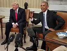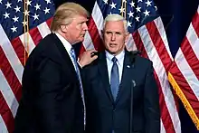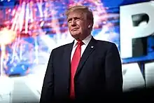 Donald Trump (/ˈdɑnəld tɹʌmp/)[alpha 1], né le à New York, est un homme d'affaires milliardaire, animateur, producteur de télévision et homme d'État américain. Membre du Parti républicain, il est le 45e président des États-Unis, du au .