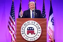 En 2009, il s'inscrit au Parti républicain, et s'y réinscrit en 2012 après un interlude de plusieurs années sans affiliation politique[186]. En 2015, Donald Trump déclare qu'il « [se] reconnaît démocrate par certains aspects » et explique son tropisme démocrate antérieur par l'influence de la vie à Manhattan, réputée pour être une terre historiquement démocrate[186].