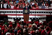 Alors que sa campagne n'est à ses débuts pas prise au sérieux par les observateurs, il remporte la désignation du Parti républicain aux primaires présidentielles de 2016. Se présentant comme un adversaire de l'establishment et du politiquement correct, il emploie un ton belliqueux et multiplie les déclarations controversées. Il s'engage notamment à réduire l'immigration. Son discours est alors souvent qualifié de populiste, nationaliste, protectionniste et climatosceptique. Sa victoire à l'élection présidentielle face à la démocrate Hillary Clinton, qui le devance toutefois largement dans le vote populaire, déjoue la quasi-totalité des pronostics.