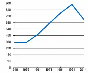 - (sq) « Évolution de la population 1948-2011 », sur pop-stat.mashke.org (consulté le ).