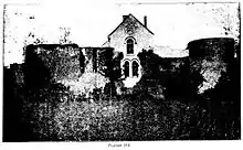 Ces bâtiments intérieurs qui devaient être construits en bois, étaient éclairés sur la cour. La seule ouverture qui régnât dans les murailles extérieures était la porte d’entrée, dont il reste encore un jambage et un bout de linteau en granite, à six mètres au-dessus du fond des fossés.