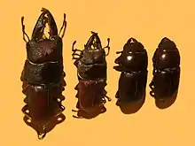 Dorcus taurus taurus de Sumatra, mâles et femelles.