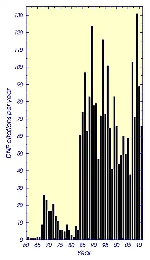 Les citations des articles (voir figure) du D.N. Poenaru et al. sur la radioactivité des particules lourdes ont commencé en 1984 après la première confirmation expérimentale par Rose et Jones (Université Oxford) de la radioactivité 14C du 223Ra.