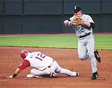 - L'arrêt-court ou le joueur de deuxième but peuvent aussi se rendre directement sur le deuxième but pour forcer l'élimination du coureur et envoyer la balle au premier but. Ces deux actions sont notées « 6-3 » et « 4-3 », la première élimination étant effectuée sans aide (unassisted out).