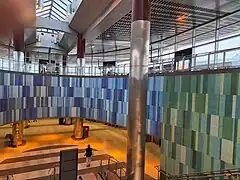La murale, créé en 1994[4] par l'artiste Arlene Stamp et intitulée Sliding Pi (Pi glissant)[2], couvre quasiment tous les murs de l'intérieur de la station, sauf ceux du niveau de la rue et celui du niveau du quai en direction sud. Au niveau du hall on trouve une plaque explicative qui précise que l'œuvre représente le numéro π.