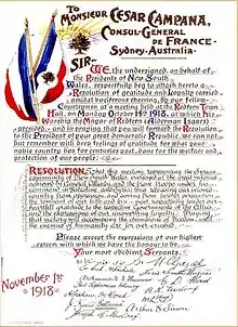 « Le cèdre éternel rend sa beauté plus éclatante encore. Notre drapeau apparait aujourd’hui, ayant deux nouvelles couleurs empruntées au glorieux drapeau tricolore. Cela assure un bon futur à notre Chère Patrie attachée à l’éternelle France, notre libératrice et gardienne zélée de notre indépendance. O Noble France… nous vous demandons humblement de permettre que ce drapeau soit reconnu comme drapeau national libanais… il a été aussi gravé sur les Carnets d’immatriculation qui ont été fournis aux Libanais, à côté du drapeau français… Il représente nos sentiments patriotiques comme il représente encore notre attachement à vous, France immortelle… »[10].