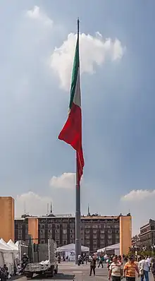 Les drapeaux monumentaux (en espagnol banderas monumentales) sont un ensemble de drapeaux de grande taille situés sur le sol mexicain. Ils sont accrochés à un mât d'au moins 50 mètres de haut et mesurent au minimum 14,3 m sur 25 m[44].