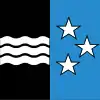 Le drapeau et les armoiries sont identiques. La fasce ondée est du côté de la hampe du drapeau, et sur les armoiries à la droite héraldique. Les étoiles sont pointées vers le haut[10].