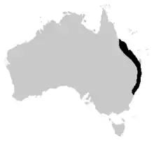 Cette espèce est endémique d'Australie. Elle se rencontre le long de la côte Est, du bassin de la rivière Hawkesbury-Nepean dans l'État de Nouvelle-Galles du Sud jusqu'au Nord de l'État du Queensland[1],[2].