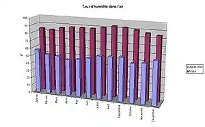 | Précipitations (mm) | 112 | 107 | 117 | 75 | 68 | 104 | 114 | 109 | 87 | 66 | 83 | 90 | 1 132 |
