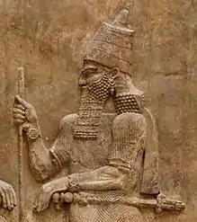 Le roi Sargon II et un haut dignitaire. Bas-relief de la façade L du palais.