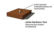 Le test de dureté Janka détermine la résistance du bois à l'enfoncement ; il mesure la force nécessaire pour enfoncer dans le bois, jusqu'à la moitié de son diamètre, une bille d'acier de 11,284 mm (0,444 pouce).