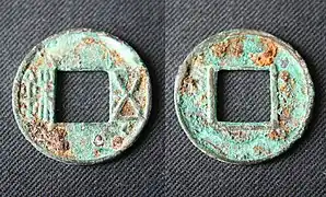 Les Han ont hérité du système monétaire unifié mis en place par les Qin, reposant sur les pièces en cuivre percées en leur centre appelées banliang et pesant 7,5 grammes. Des mesures de privatisation de l'émission de monnaie furent prises durant les premiers temps de la dynastie. Elles aboutirent à la frappe d'une grande quantité de pièces, favorisant le développement de pièces moins lourdes destinées à des échanges plus courants et peu à peu à un phénomène de dépréciation de la monnaie issu notamment du rognage des bords des pièces pour économiser du métal. Le gouvernement décida à plusieurs reprises d'instaurer de nouveaux types de pièces, jusqu'en 120-119 av. J.-C. quand fut promulguée la suppression définitive des banliang et la mise au point des wushu de 3,25 grammes, qui devint la monnaie la plus répandue en Chine jusqu'aux Tang, en dépit des tentatives de Wang Mang d'émettre divers types de monnaie reposant approximativement sur des modèles antiques. Cela s'accompagna d'une nationalisation totale de l'émission de monnaie, prise en charge par des ateliers de frappe étatiques, et d'un accroissement considérable de la masse monétaire en circulation durant les siècles suivants. Les prélèvements fiscaux et échanges sous les Han furent de plus en plus monétisés, ce qui reflète la place croissante de la monnaie dans l'économie chinoise à cette période[80].