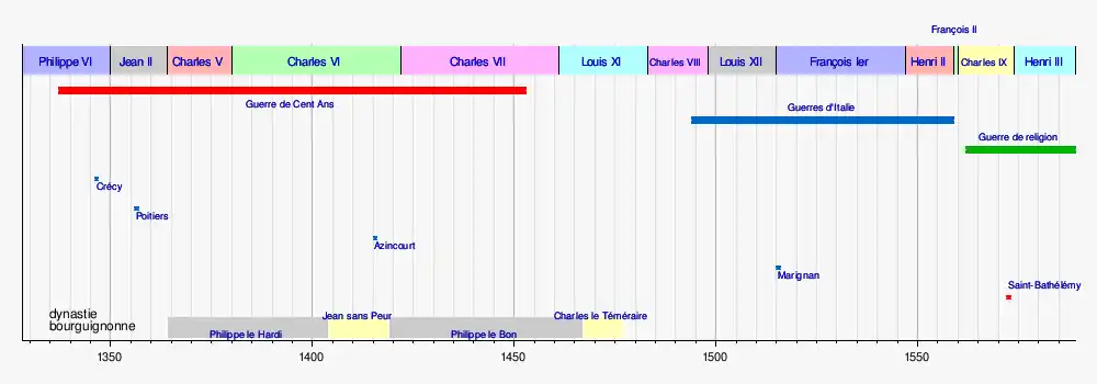 La maison de Valois est la branche cadette de la dynastie capétienne qui règne sur le royaume de France de 1328 à 1589. Elle succède aux Capétiens directs et précède les Bourbons.
