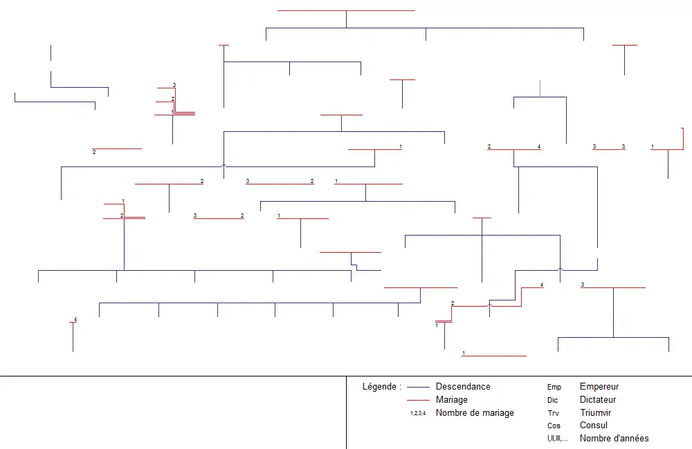 Arbre généalogique des Julio-Claudiens Dict Cos I Cos VII Cos I Cos IV Dict. vie Cos I Cos III Cos I Trv X • Cos II Trv X • Emp XLI 1re ép. d'Auguste Cos III Emp XXIII Cos I Cos I Cos I Cos II Emp XIV Emp IV Cos II Cos I Emp XIV |