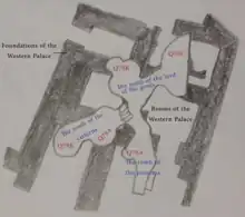 Le palais Q était bâti au-dessus de tombes souterraines, creusées dans des cavités naturelles aménagées et destinées à accueillir les membres de la famille royale ayant vécu entre la fin du XIXe siècle et la première moitié du XVIIe siècle. On y accédait par un couloir à escaliers creusé sous l'édifice. Une dizaine de tombes ont été identifiées, dont seulement trois ont été inviolées durant l'Antiquité[64].