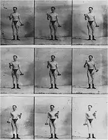 Desbonnet utilise aussi la pellicule cinématographique pour immortaliser les contractions volontaires avec des haltères à ressorts. Il sera le sujet de ce film pris à la station physiologique du Parc des Princes par le Docteur Pagès[41].