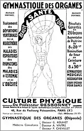 Après de sérieuses études et un travail acharné pour réunir une documentation complète sur la gymnastique à travers les âges. Desbonnet invente la culture physique et en précise le sens physiologique par sa gymnastique des organes[12].