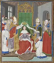 Philippe de Poitiers est considéré par les grands comme le plus apte à gouverner et se fait sacrer roi de France, consacrant l'éviction de Jeanne[6] : si le choix du monarque français se fonde sur l'hérédité et le sacre, l'élection peut reprendre ses droits en cas de problème. Après le court règne de Philippe V, mort en 1322 sans héritier mâle, c'est son plus jeune frère, Charles IV, qui, bénéficiant du précédent de son aîné, ceint à son tour la couronne. Mais son règne dure également peu de temps.