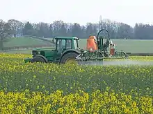 Les effets des pesticides sur la santé humaine dépendent de la toxicité du produit et de ses adjuvants, et de la durée et de l'ampleur de l'exposition[58]. Les travailleurs agricoles et leurs familles sont plus exposés au contact direct.
