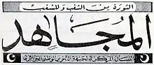 Le titre El Moudjahid a été choisi parmi d'autres titres (Le Soldat, Le Révolutionnaire ou Le Volontaire) pour plusieurs raisons. Il est lié au concept de djihad qui remonte jusqu'au début de l'occupation française en 1830. Il a une signification qui dépasse la signification religieuse[17]. Il résonne bien tant vis-à-vis des autorités coloniales que des Algériens. Il permet d'unifier les deux éditions arabe et française[18].