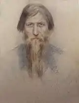 | Grigori Raspoutine en 1914 | Rêve, (carte-postale), Klokachiova, 1916 | Sur les toits à Samarcande, 1914, huile | Batcha Mamed en 1918 |