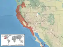 Cette espèce se rencontrent en Californie, en Oregon et au Washington aux États-Unis et en Basse-Californie au Mexique[1].