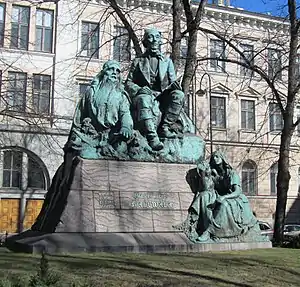 sculpté par Emil Wikström en 1902 et érigé au Lönnrotin puistikko, Lönnrotinkatu à Helsinki.